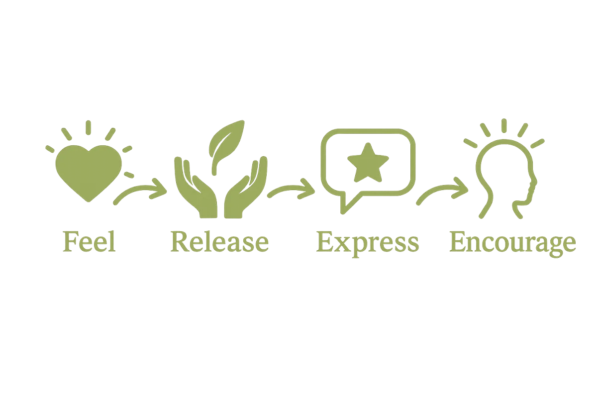 A 4-module online course + PDF journal/workbook to guide you through the FREE KIDS Method: Feel, Release, Express, Encourage.